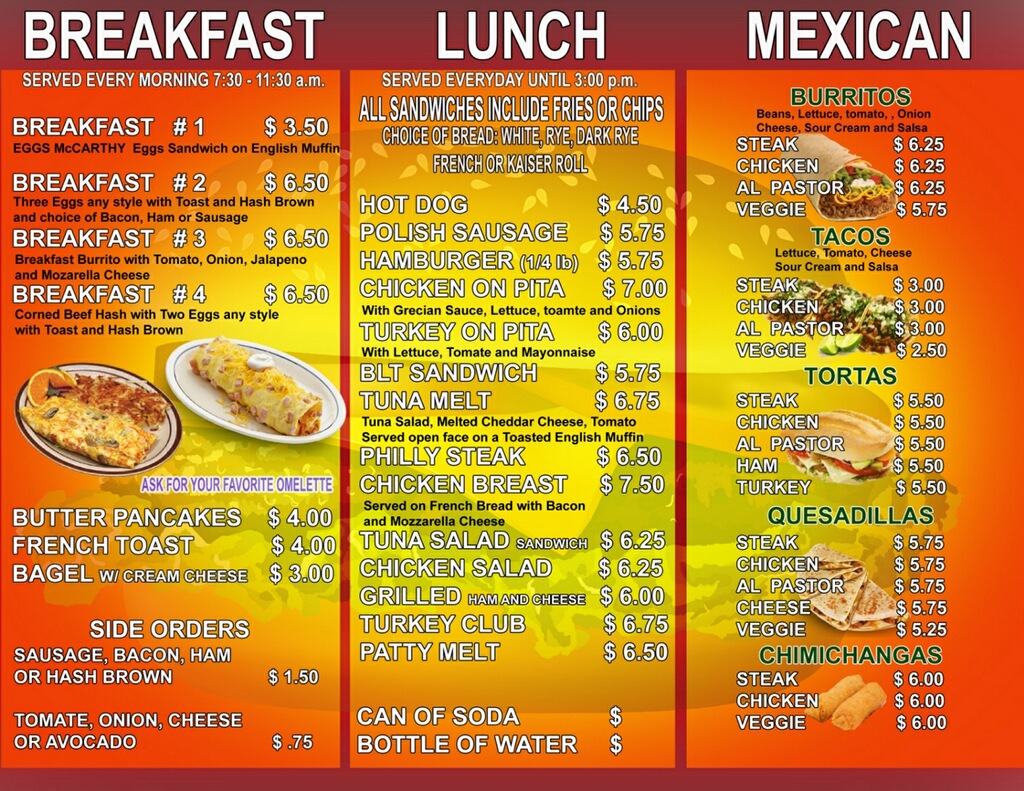 Jose's Hacienda offers a straightforward, casual menu blending classic Mexican flavors with familiar café-style bites. The selection features a variety of tacos and tortas alongside simple sandwiches and quick lunch options, making it easy to enjoy a satisfying meal any time of day.