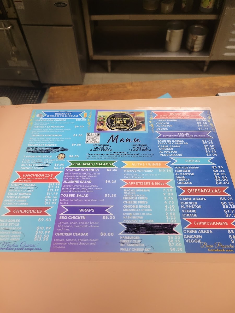 Jose's Hacienda Menu